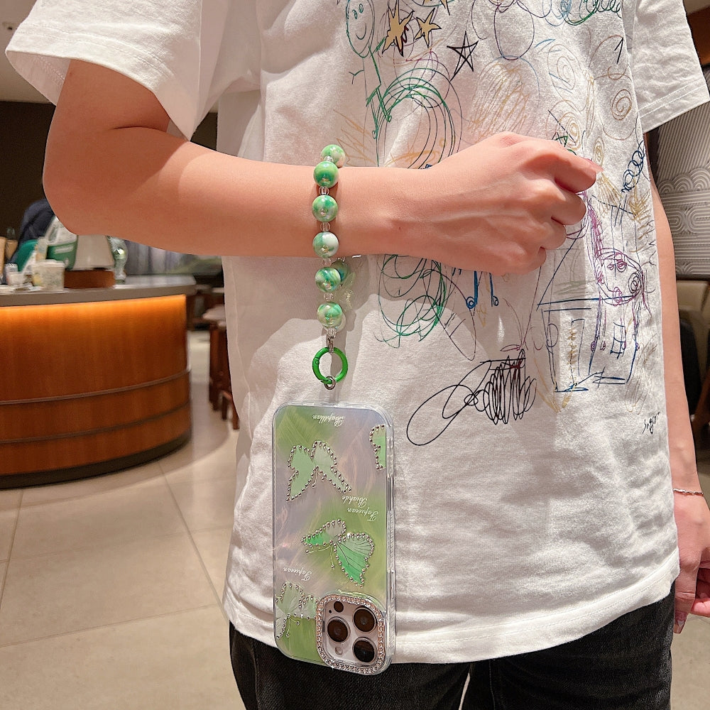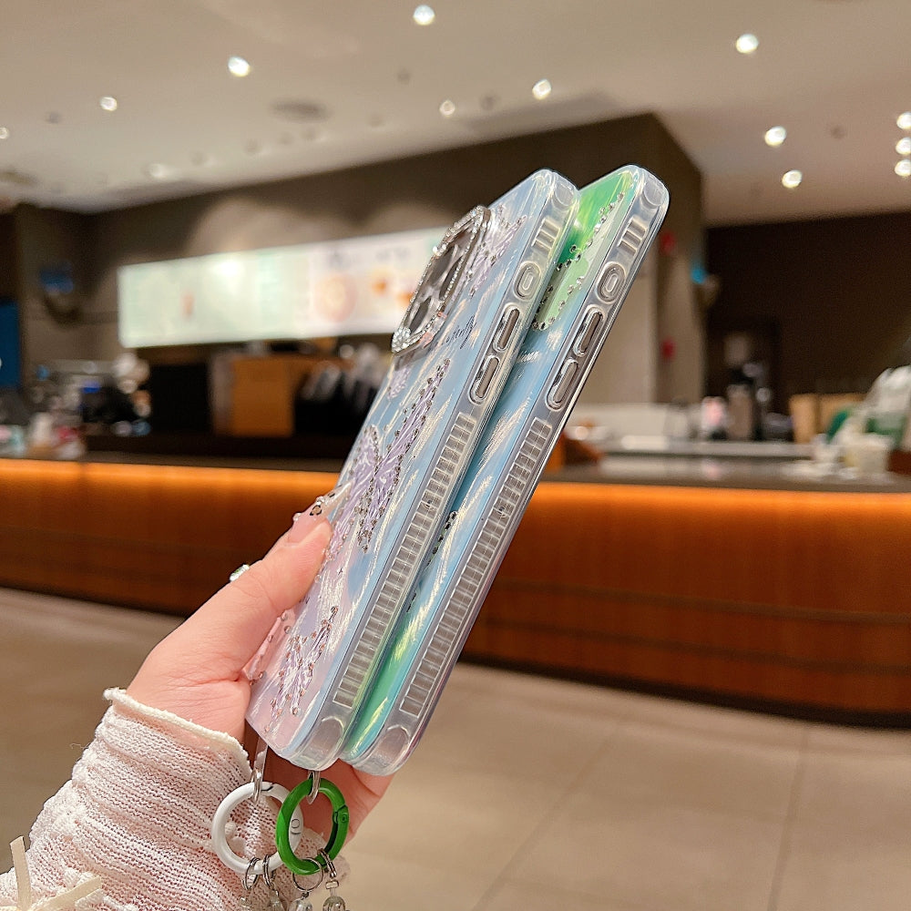 Printed Butterfly Stone Pattern TPU (Soft) | PC (Hard) Phone Case with Bracelet - iPhone 14 Plus